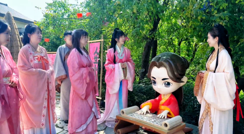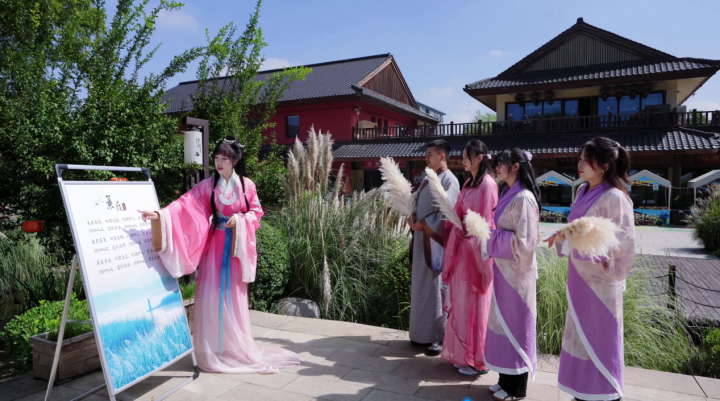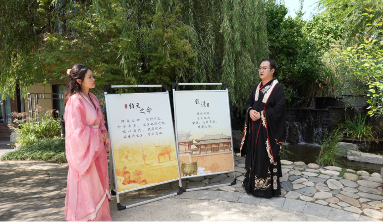 随后,我校三位主讲教师身着汉服,带领学生在“诗经里”实景场域中,以脚步丈量诗行,以身心体悟诗魂。